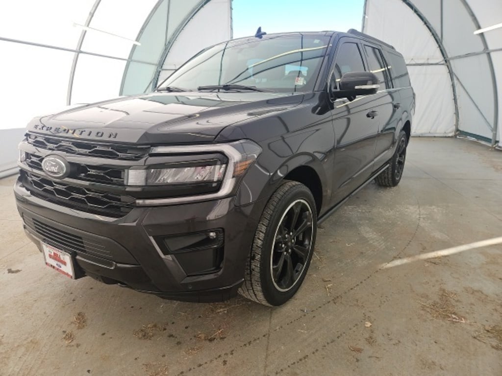 12 Speakers, 15.5" LCD Capacitive Touchscreen, 1st & 2nd Row Floor Mats w/Logo, 26mm Engine Radiator, 360-Degree Camera w/Split View, 360-Degree Camera w/Trailer Reverse Guidance, 3rd row seats: split-bench, 4-Wheel Disc Brakes, ABS brakes, Adjustable pedals, Air Conditioning, Alloy wheels, AM/FM radio: SiriusXM with 360L, Auto High-beam Headlights, Auto-dimming door mirrors, Auto-dimming Rear-View mirror, Automatic temperature control, Black Headlamp and Fog Lamp Bezels, Black Limited Tailgate Badge, Black Rear Bumper, Black Roof Rack Side Rails, Body Color Door Handles, Brake assist, Bumpers: body-color, Compass, Connected Navigation, Delay-off headlights, Driver door bin, Driver vanity mirror, Dual front impact airbags, Dual front side impact airbags, Ebony Black Bar and Mesh Grille, Ebony Black Power Deployable Running Boards, Ebony Black Tailgate Applique, Electronic Stability Control, Emergency communication system: SYNC 4 911 Assist, Equipment Group 303A Stealth Package, Expedition Lettering on Hood, Exterior Parking Camera Rear, Four wheel independent suspension, Front anti-roll bar, Front Bucket Seats, Front Center Armrest, Front dual zone A/C, Front fog lights, Front reading lights, Front Tow Hooks, Fully automatic headlights, Garage door transmitter, Heated & Ventilated Leather Front Captain's Chairs, Heated door mirrors, Heated front seats, Heated rear seats, Heated steering wheel, Heated/Ventilated Lthr Front Captain's Chairs (A), Heavy-Duty Trailer Tow Package, Illuminated entry, Instrument Panel Cluster, Integrated Trailer Brake Controller, Leather steering wheel, LED Taillamp w/Black Bezels, Low tire pressure warning, Memory seat, Navigation system: Connected Navigation, Occupant sensing airbag, Outside temperature display, Overhead airbag, Overhead console, Panic alarm, Passenger door bin, Passenger vanity mirror, Pedal memory, Power door mirrors, Power driver seat, Power Liftgate, Power moonroof, Power passenger seat, Power steering, Power windows, Power-Folding Sideview Mirrors w/Autofold, Pro Trailer Backup Assist, Radio data system, Radio: B&O Sound System by Bang & Olufsen, Rain sensing wipers, Rear air conditioning, Rear anti-roll bar, Rear reading lights, Rear window defroster, Rear window wiper, Reclining 3rd row seat, Remote keyless entry, Reverse Brake Assist, Security system, SiriusXM w/360L, Speed control, Speed-sensing steering, Speed-Sensitive Wipers, Split folding rear seat, Spoiler, Sport Center Console, Sport Tuned Suspension, Sport-Tuned Suspension, Stealth Edition Package, Steering wheel memory, Steering wheel mounted audio controls, SYNC 4 w/Enhanced Voice Recognition, SYNC 4A w/Enhanced Voice Recognition, Tachometer, Telescoping steering wheel, Tilt steering wheel, Traction control, Trip computer, Turn signal indicator mirrors, Variably intermittent wipers, Ventilated front seats, Voltmeter, Wheels: 20" Bright Machined Aluminum, Wheels: 22" Premium Black-Painted Aluminum.